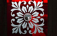 Ob mattierte oder bunte Ecken: Alle werden von uns selbst in Handarbeit gefertigt. Bei den bunten Ecken wird der farbige Glasüberfang mit Hilfe der Sandstrahlgravur entfernt, teilweise schleifen wir Blätter/Blüten an. Sternchen, Linsen und dergleichen werden am Schleifbock geschliffen und poliert, so erhalten die klaren Bereiche das brilliante Leuchten.